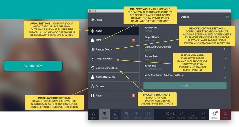Tout d’abord CAMELOT est disponible sur Windows, Mac OS, et IOS (ce qui le différencie déjà de MainStage qui ne l’est que sur Mac OS).