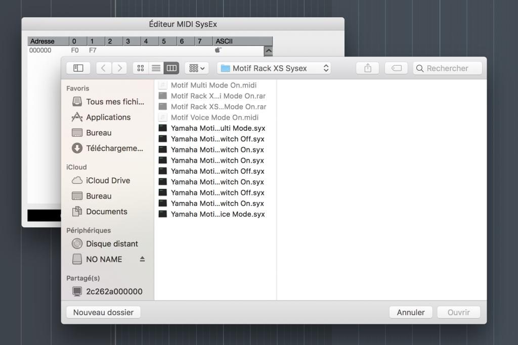 Apparemment, sur me Motif Rack XS il n’est pas possible de changer de mode (Voice ou Multi) à distance autrement qu’en passant pas l’envoi d’un message System exclusif (SysEx).
