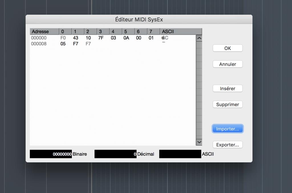 Importer votre fichier Sysex